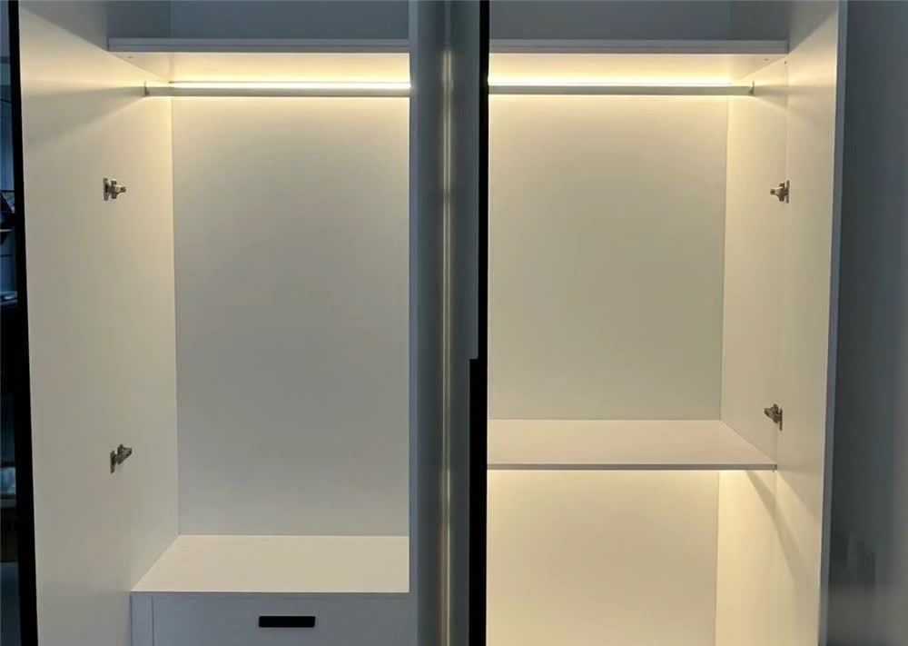 家里的衣柜最好提前预留感应灯的供电线以及灯槽,日后加装充电感应灯的话,每次充电都非常麻烦,而不做感应灯的话,衣柜内太过昏暗的环境拿衣服时很难看清。